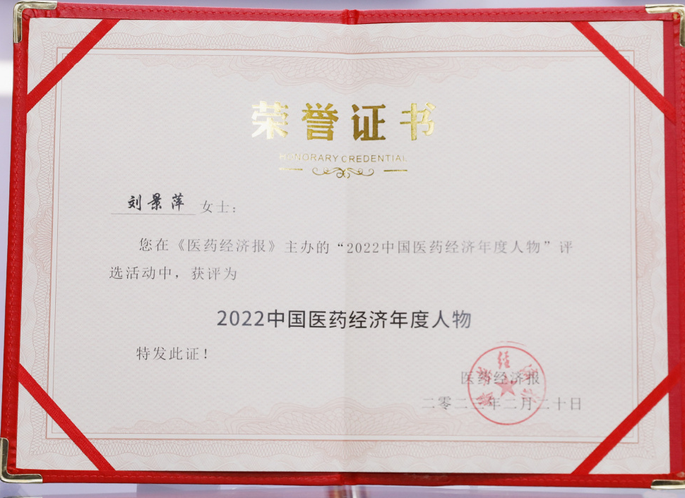 尊龙时凯药业集团董事长刘景萍当选“2022中国医药经济年度人物”